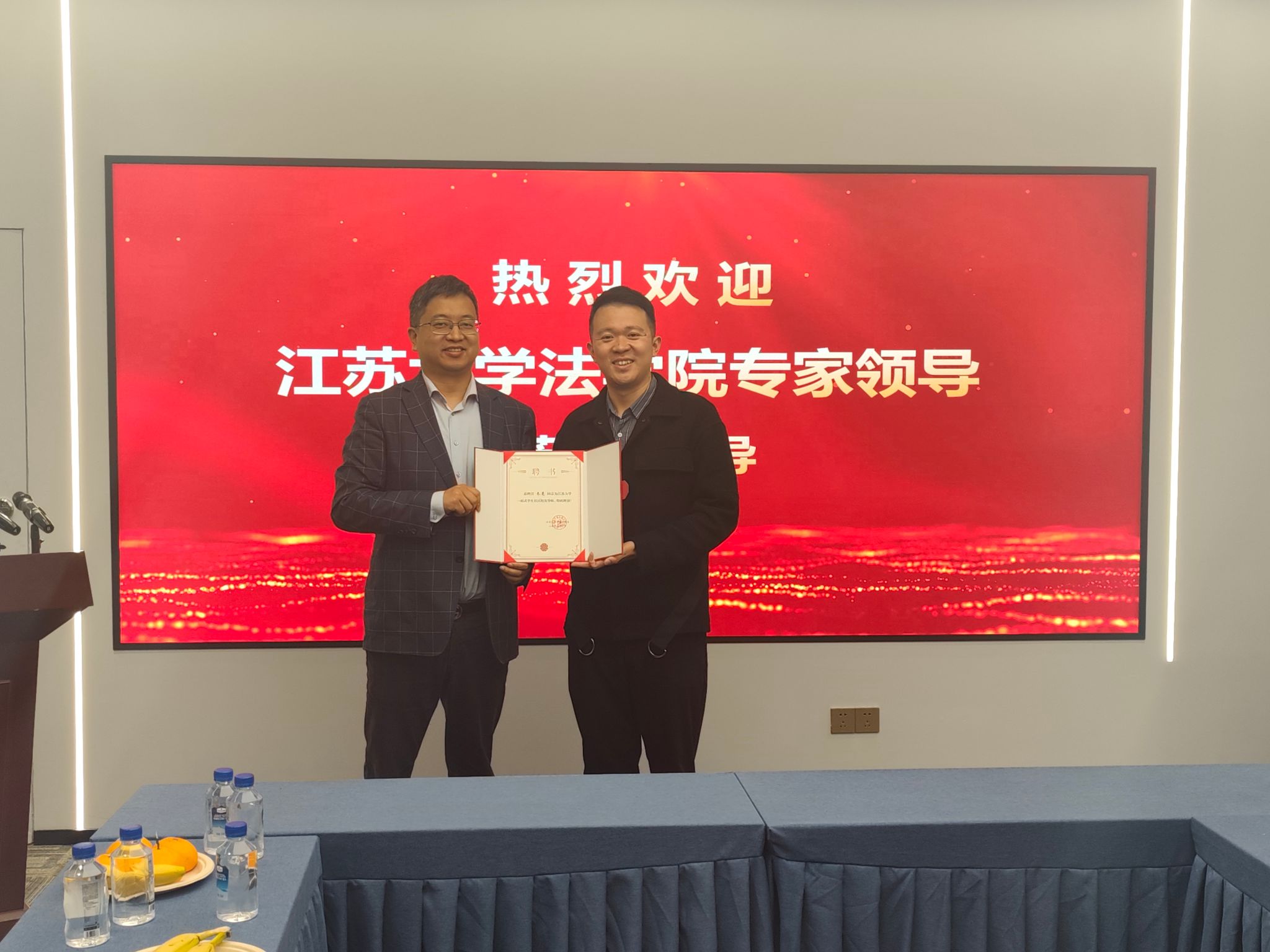 王鹏与江苏唯瑞尚一律师事务所主任朱亮共同为“江苏大学枫桥新语辅导员工作室校外合作基地”揭牌。