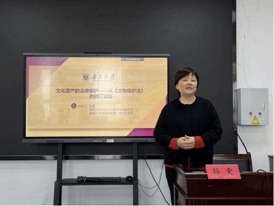 12月19日,南京大学中美文化研究中心副主任、法学院教授、博士生导师孙雯教授应邀来法学院讲学,讲座主题为《文化遗产的法律保护》。讲座由法学院党委书记朱玲萍主持,周爱春等作为与谈人,40余名师生参加了讲座。